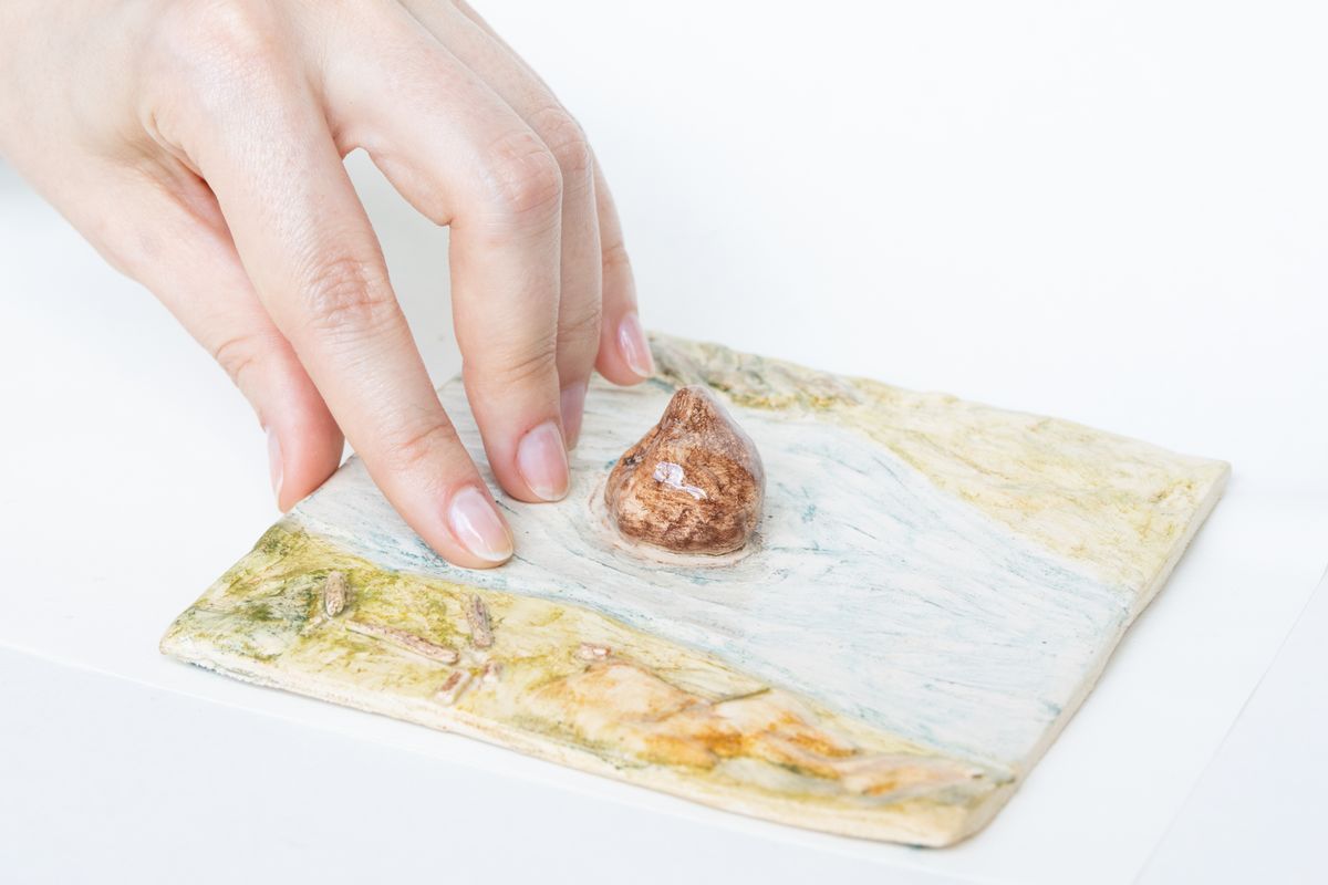 Een reiskoffer staat open. Er zitten geen kleren in, maar kleine tegeltjes. Lika verliet haar thuis en kan niet meer terug. In miniatuurlandschappen geeft ze vorm aan haar herinneringen en de plekken waar ze opgroeide. Zo blijven ze altijd dichtbij — als een moederland dat met je meereist.