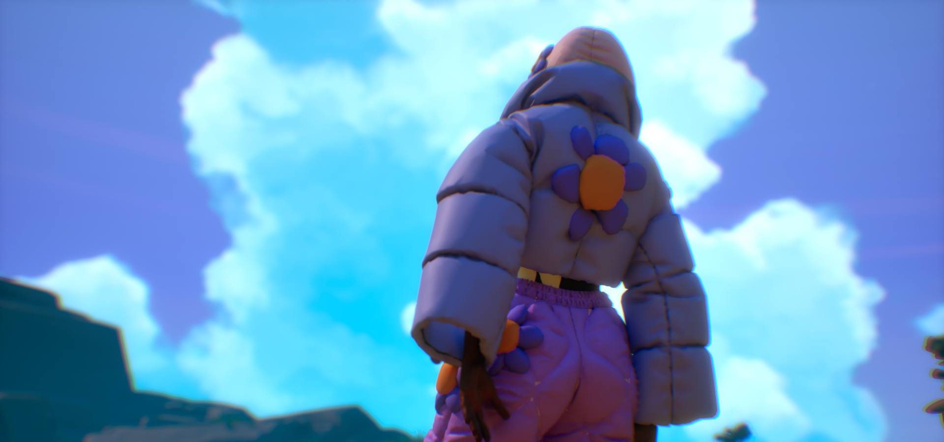 Enter: een videogame waar je niet hoeft te scoren, maar zonder haast op ontdekking mag. Met je avatar in een lila donsjas dwaal je door een kleurrijk droomlandschap. Gewapend met speelse nieuwsgierigheid en op zoek naar nieuwe werelden. In Mbombo slaakt een groep zwarte lichamen samen één zucht, en verkent Sondi rust en dromen als vormen van verzet.
