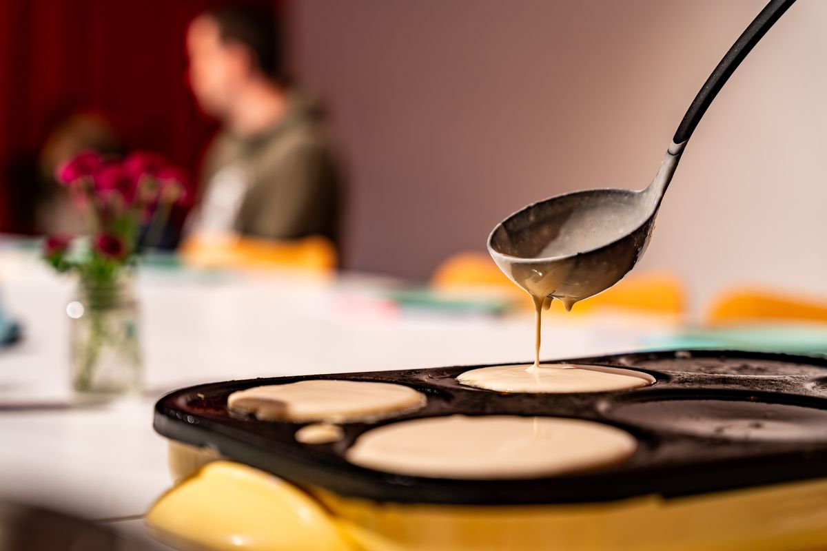 Iedereen heeft rituelen rond eten. Je klas ontmoet bezoekers van dienstencentrum Den Brandt en samen delen ze verhalen. Op het einde zijn er pannenkoeken (gluten- en lactosevrij).